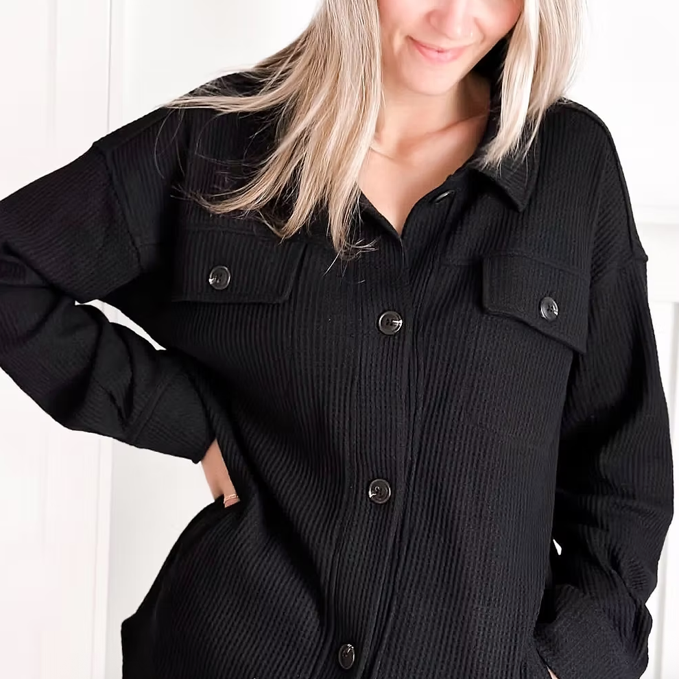 These women's loose fit, oversized waffle knit button down shackets are made of high quality textured waffle, perfect for all Seasons and perfectly matches with so many outfit combos.