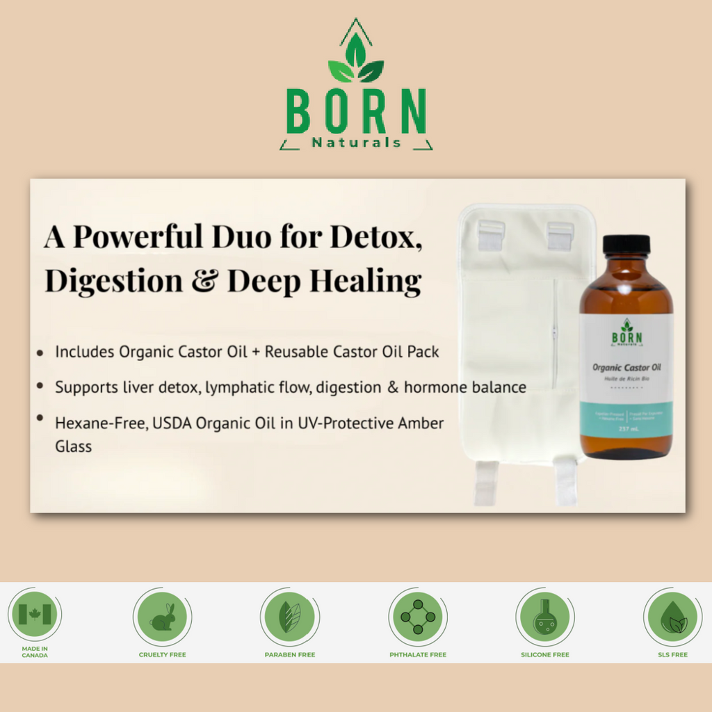 Transform your wellness routine with the healing power of BORN Naturals' Castor Oil Pack. Embrace the natural path to detoxification, comfort, and rejuvenation for a happier and healthier you. Order yours today and experience the transformative benefits of this ancient remedy in the comfort of your own home.