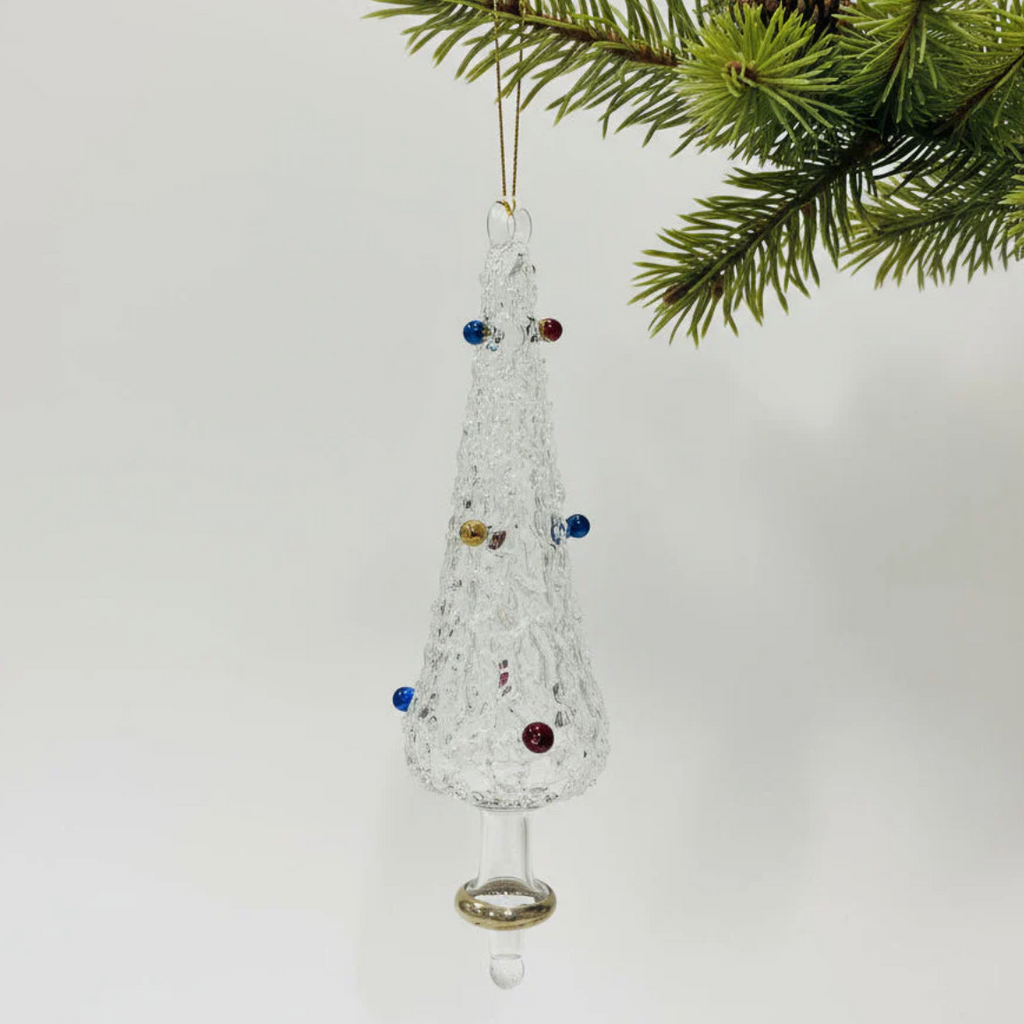 Add a special touch to your decor with this unique blown glass nature inspired ornament in the shape of a pine tree.