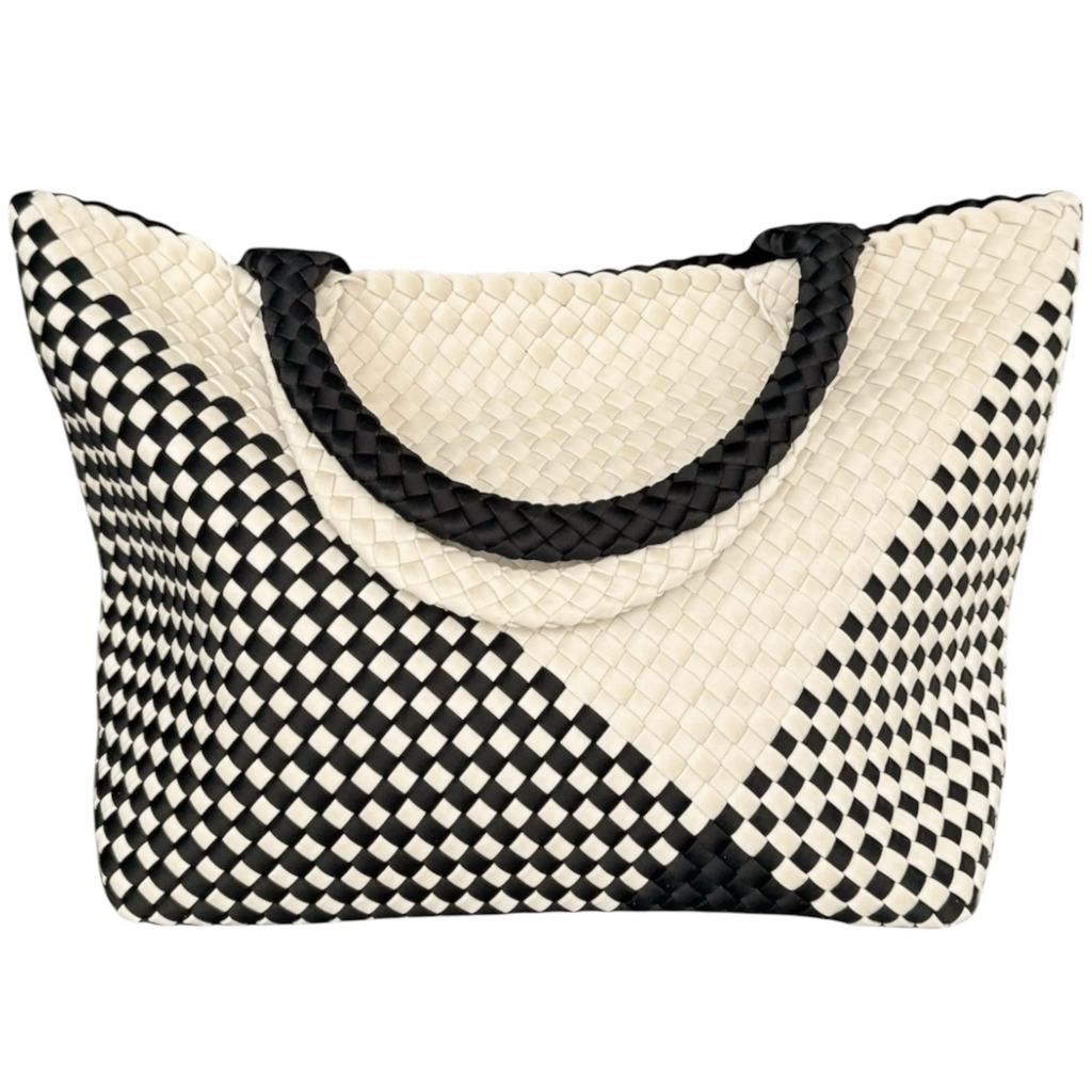 The woven strands create a polished and elevated look, while the premium Neoprene fabric ensures long lasting durability. It's lightweight, easy to clean and water resilient, making it the perfect companion for work, your resort vacation or lazy days at the cottage.
