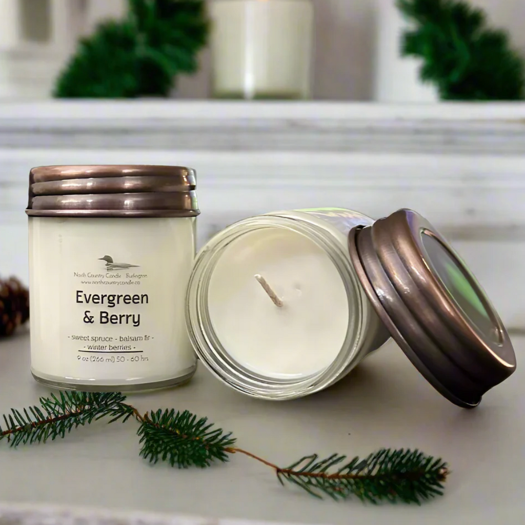 Evergreen & Berry is North Country Candle's #1 selling holiday scent, with fragrance notes that are sweet spruce, balsam fir and mingling winter berries. This candle will scent a large space.