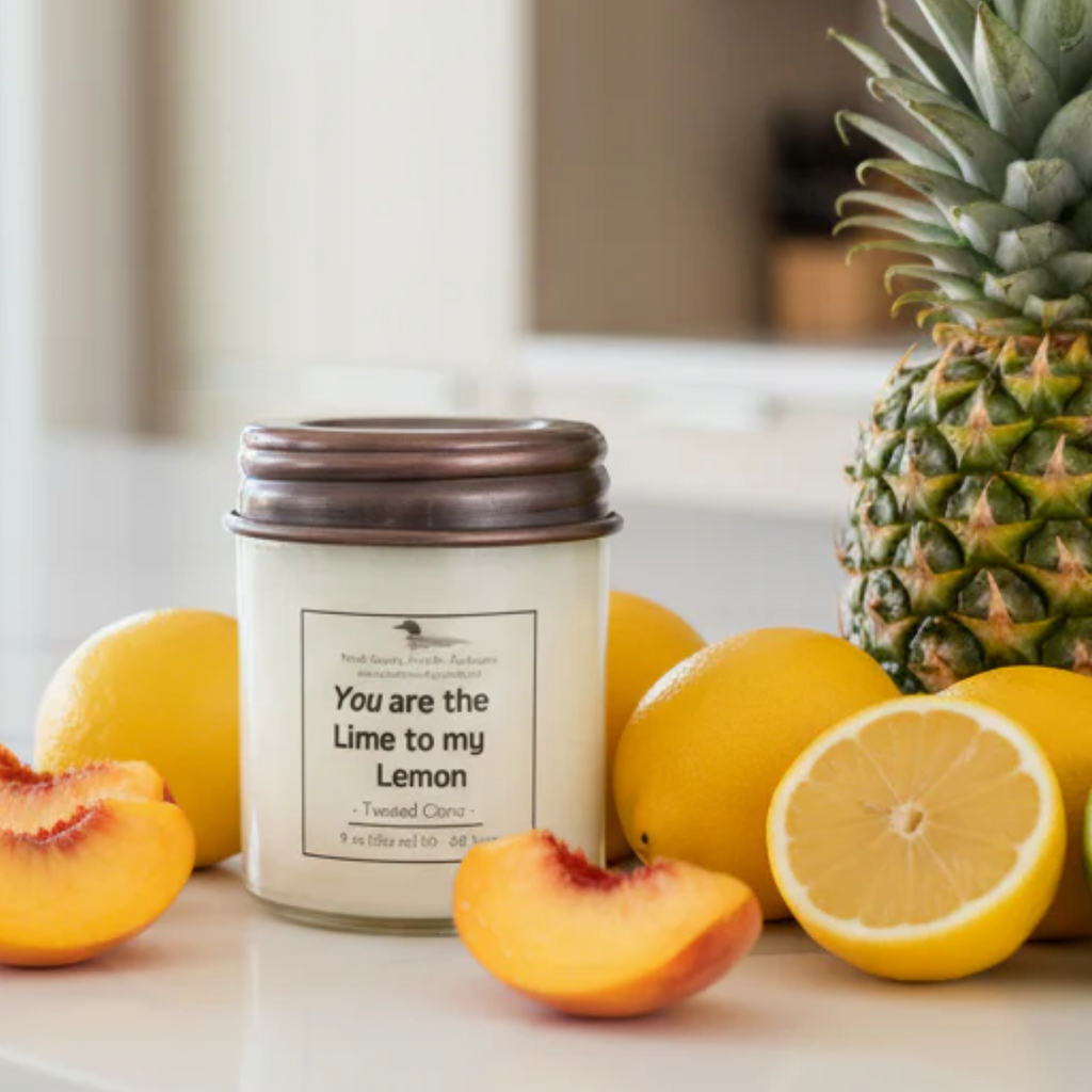 Twisted Citrus scent, a vibrant, uplifting fragrance sweeter when paired with fruit. Top notes of lemon and lime, paired with pineapple, with middle notes of peach with nuances of berries, leading to an herbaceous green note at the base.