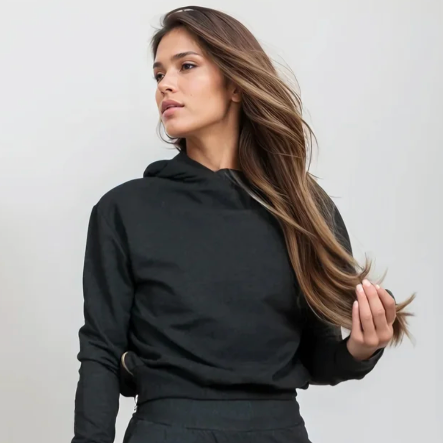 Stay snug and stylish with the cozy hood that completes the bomber hoodie silhouette. Whether you're facing brisk winds outdoors or simply looking for an extra layer of comfort, our hoodie's hood provides the perfect blend of warmth and fashion-forward flair.