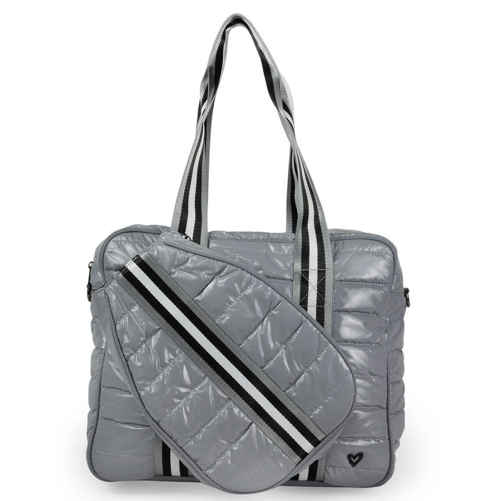 This stylish puffer bag combines fashion and function, boasting a lightweight quilted design that's both eye-catching and practical. With ample space for two standard-size paddles, a dedicated zipper pocket for essentials, and two elastic water bottle holders, you'll be ready for anything the court throws your way.