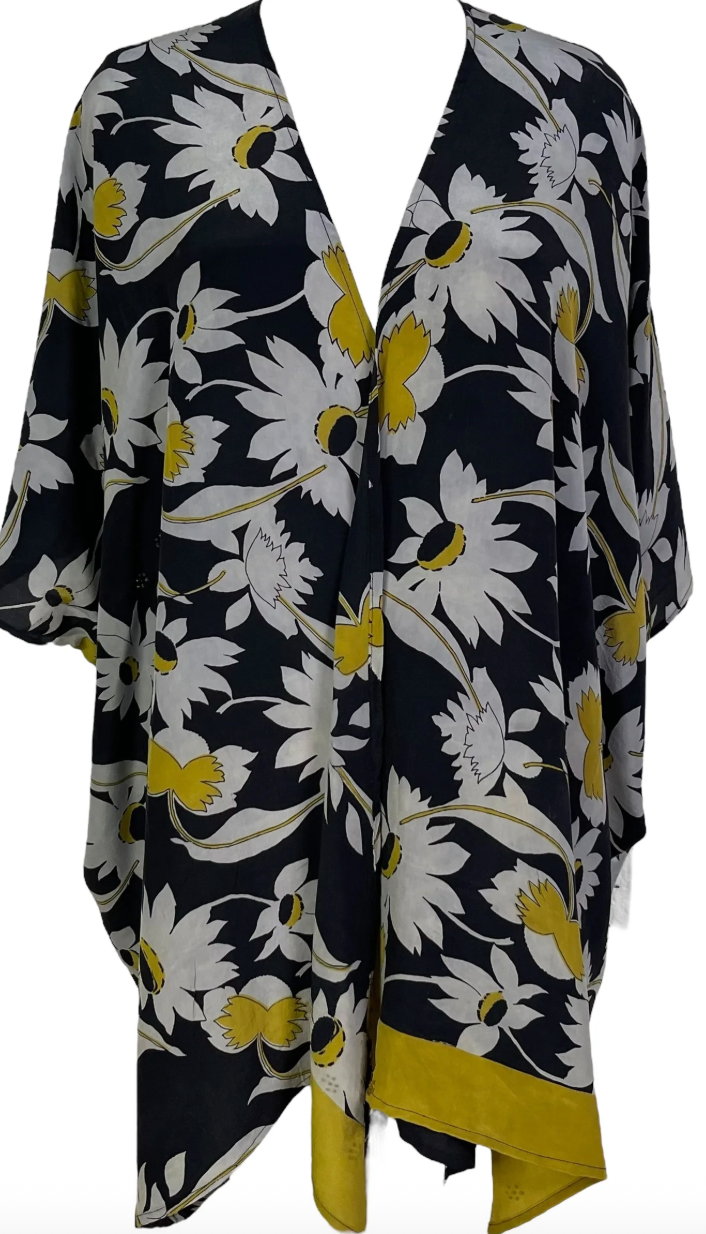 Its flowy front panels provide ease of movement and comfort. The 'Rich Lady Hack' enables even more versatility, allowing the cardigan to be worn both upside-down and backwards. Paired with the matching Avatar Pure Silk Tapered Tunic Top or Waterfall Top, this piece achieves an elevated look.