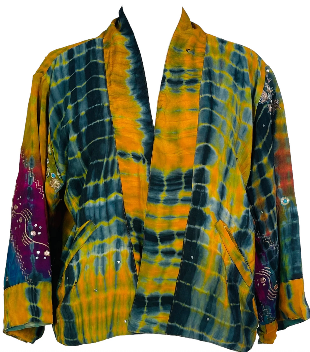 In Eastern philosophy, an Avatar is an incarnation that teaches how to evolve virtues of the past into the present. The Pure Upcycled Silk Avatar Collection is made from vintage pure silk saris, chosen and worn by women in the past to celebrate their lives. If you look very closely, you will see that the silks in this collection show some of the character of their previous incarnations through the appliqués that have been lovingly applied to bring new life to the fabric. This piece is a reminder that we are part of a collective journey to which we all add a little something.