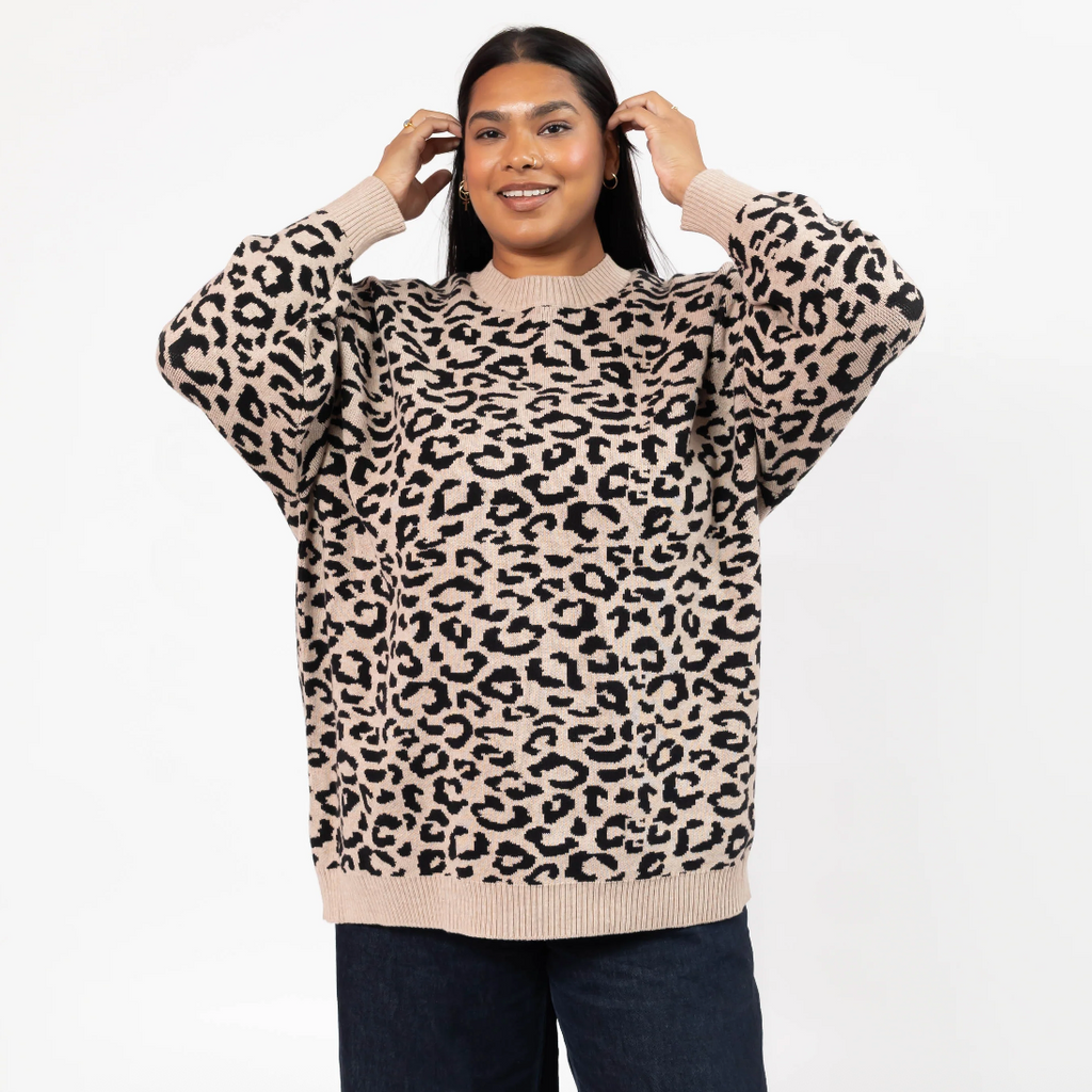 Made in a soft cotton blend yarn, the Leopard Long Sweater features an oversized fit perfect for pairing with leggings or jeans. Wear this classic silhouette all season long for a fierce and fabulous look!