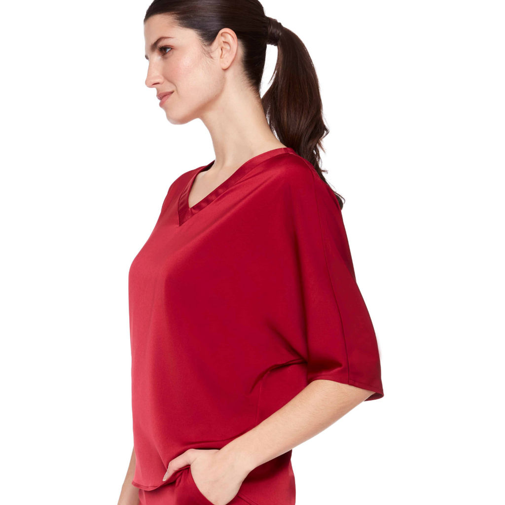 Boasting an elegant sheen and a languid silhouette, this lush piece flows effortlessly around the body in a demure embrace. An alluring V-neck adds a sultry dose of feminine chic, injecting a flirty edge to the minimal vibe. The epitome of low-key luxury.